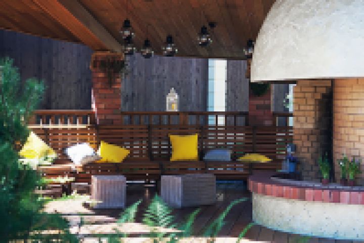 Центральным ядром беседки являются три функциональные зоны, собранные воедино в большой круг и накрытые одним большим куполом: это камин, мангал и тандыр. Вся беседка формируется вокруг них. Это главные как функциональные зоны, так и визуальные. А еще это зоны притяжения людей: компаний больших и маленьких. Благодаря такому приему они могут работать как вместе, так и по отдельности, не мешая друг другу и не отвлекая собравшихся вокруг них компаний. Мягкая зона, плавно закручивающаяся вокруг центрального ядра беседки, подчиненая общей структуре и дает возможность избежать и визуальных ограничений и ограничений в перемещении. Это позволило создать очень гибкие, удобные и комфортные сценарии отдыха, готовки и общения всех без исключения. Органичное соединение в одном месте трех зон - без преувеличения ключевое решение, позволившее создать открытость беседки, как внутри так и снаружи.