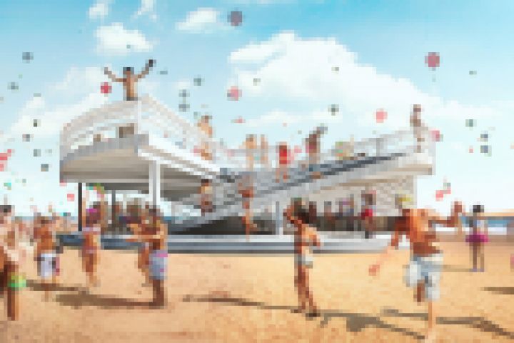 (в соавторстве с Еленой Кобзарь) 2-х этажный бар располагается на первой линии у самого Черного моря. Такое замечательное расположение в самом центре сумасшедшего Казантипа должно было быть отмечено знаковым строением. Винтовая лестница, закручивающаяся в двух противоположных направлениях, словно вихрь поднимает второй этаж с обзорной площадкой на море и пляж. Площадка первого этажа не имеет стен и максимальна открыта для свободного перемещения людей и визуального обзора. Отделка светлых тонов призвана усилить впечатление легкости и воздушности строения. Бар, размещенный на первом этаже, может работать как на пространство внутри так и на подход со стороны моря.