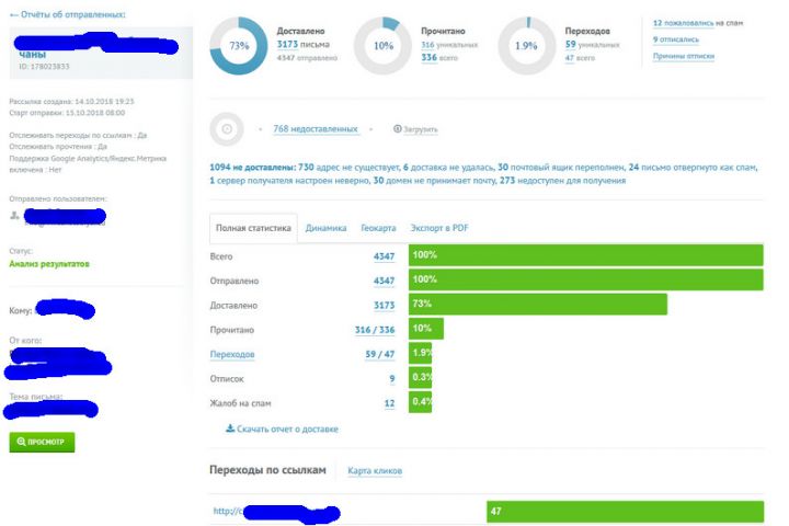 - окончательная, обновленная статистика (если заказ от 3.000 писем), через несколько часов.