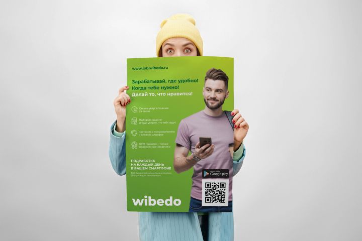 Разработала дизайн плакатов и листовок для wibedo.com, платформы объединяющей работодателей и сотрудников