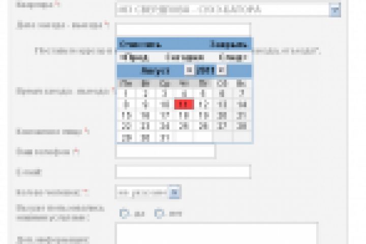 Скрипт бронирование гостиницы. Работает по технологии ajax. Выбор даты в выпадающем меню календаря