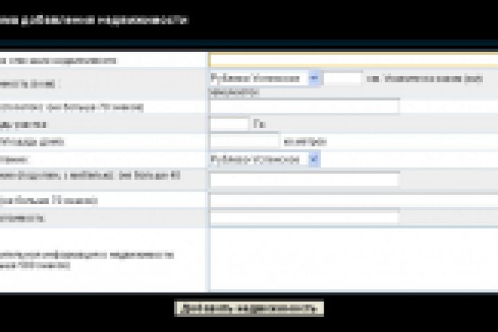 Скрипт добавления недвижимости. Применяется в блоке CMS. Использует базу данных MySQL