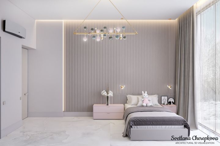 Для дизайн-проекта мной выполнена 3D визуализация четырех спален и трех санузлов общей площадью около 110 кв.метров.