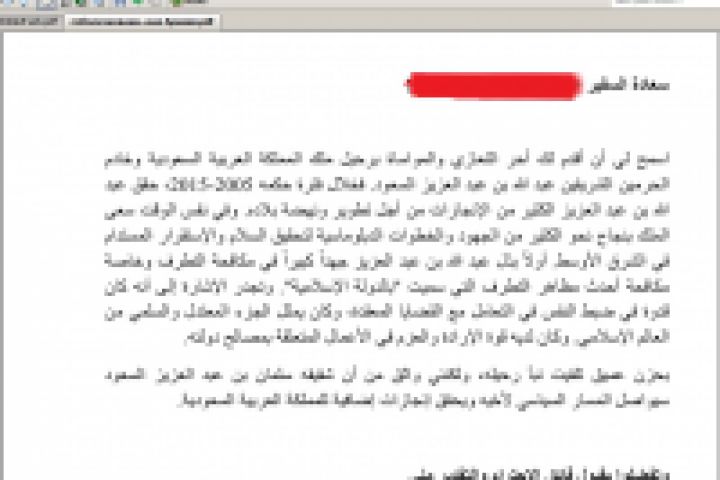 Данное письмо составлялось по причине скорби по умершему Королю Саудовской Аравии в 2015 году.