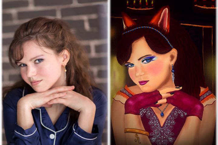 Обрисовка портрета по фото, изменение деталей. Степень схожести с оригиналом - по желанию заказчика. Фотограф - Наталья Алимурадова.
