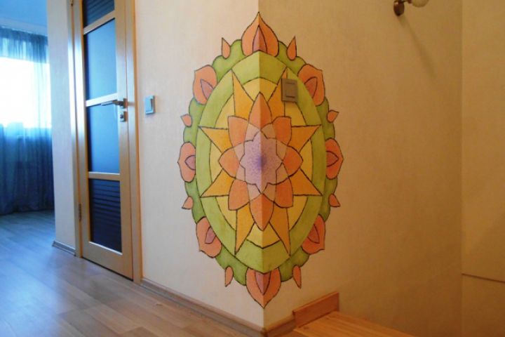 Роспись угла стены в спальне. Размер: 150х150см. Материал: акрил