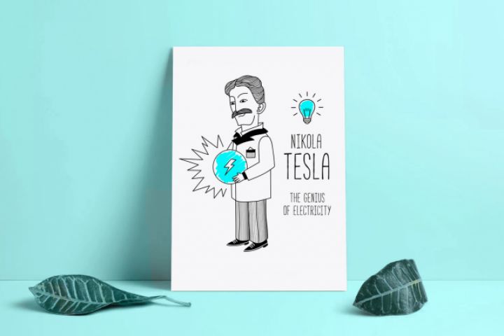 Комиксные иллюстрации Эйнштейна и Теслы