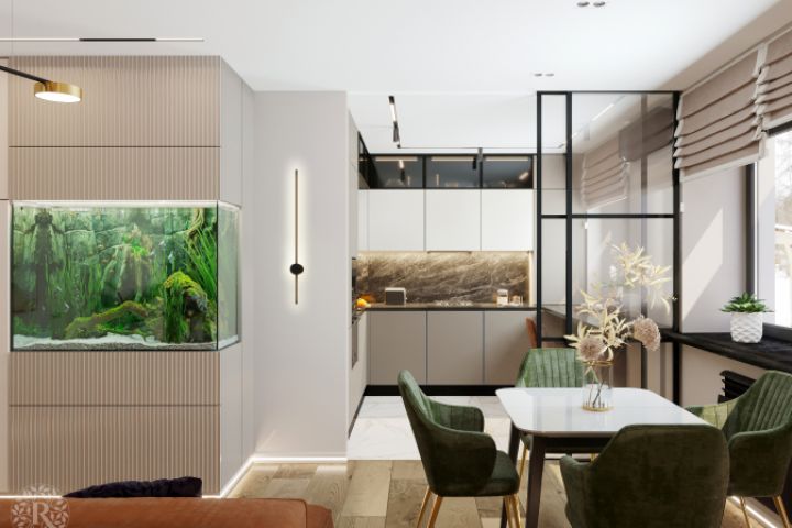 Кухня-гостиная в трёхкомнатной квартире в Ярославле