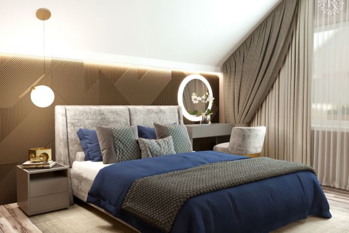 Спальня на мансардном этаже частного дома в Вологде