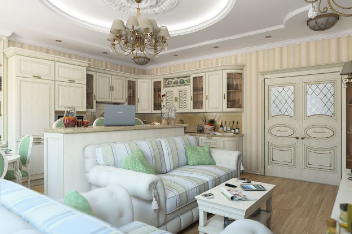 Кухня-гостиная в классическом стиле в г. Пушкин