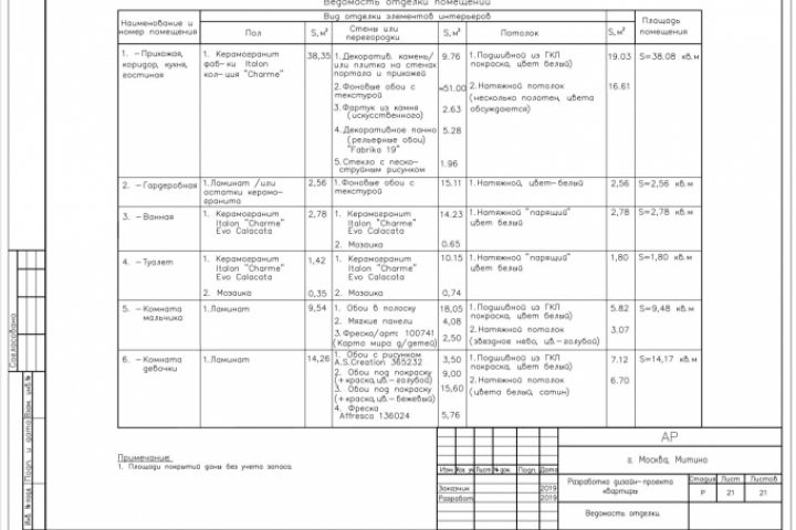 Ведомость отделки