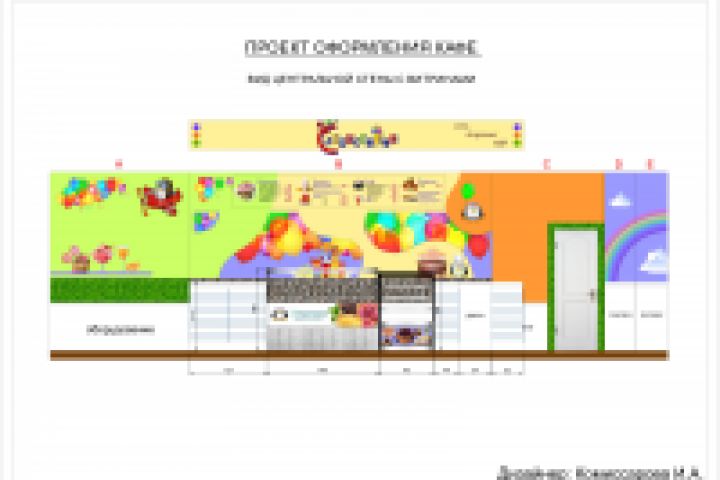 Дизайн-проект фудкорта для сети кафе-мороженых. Развертки стен.