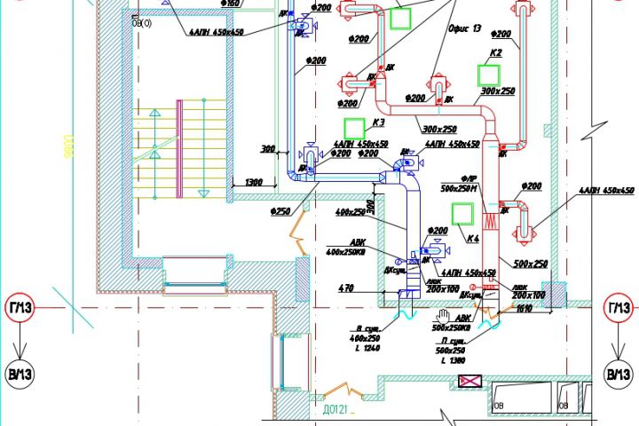 Разработка схемы вентиляции, включая расположение воздуховодов, вентиляционных блоков и вентиляционных устройств.