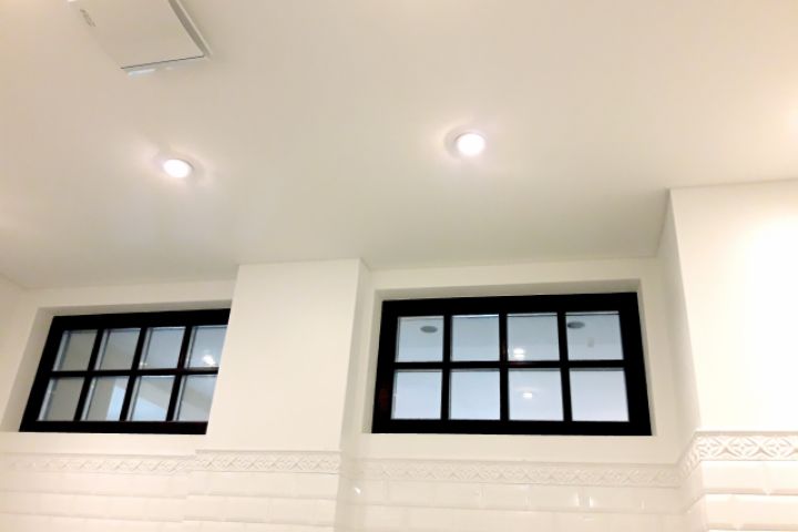 в ванной комнате второй свет! Окна в раме цвета графит. Натяжной потолок.