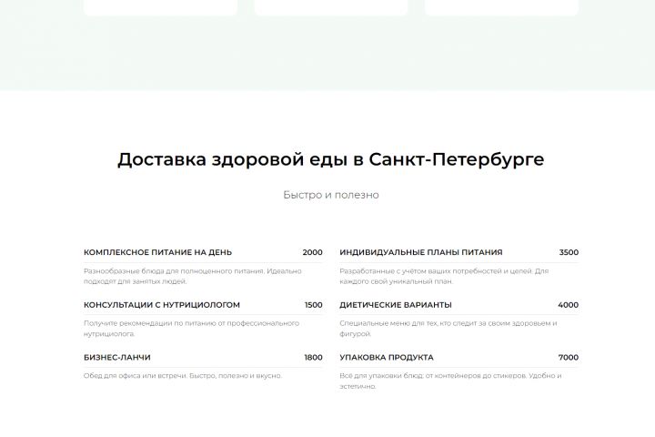Лендинг "Доставка здоровой и вкусной еды в Санкт-Петербурге"