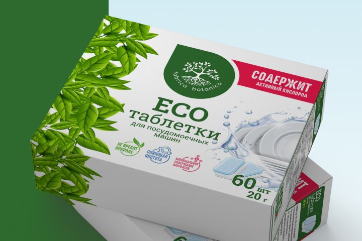 Была напечатана упаковка таблеток для посудомоечной машины - они в продаже, клиент доволен, какой еще можно желать результат. Позже была изготовлена этикетка для средства для стирки.