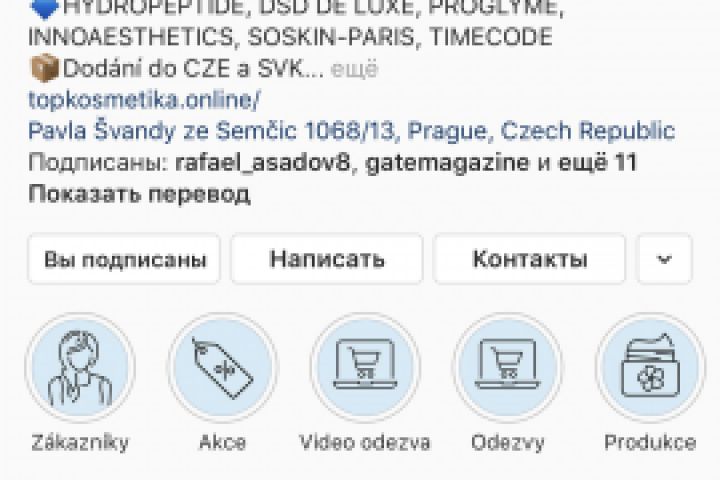 Инстаграм для интернет-магазина косметики в Чехии