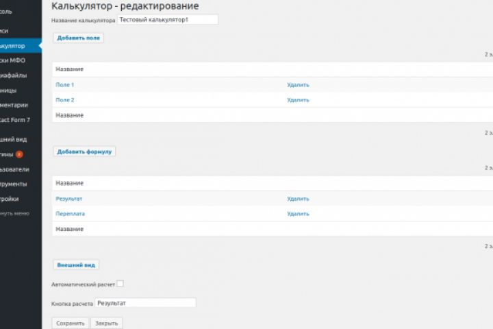 Плагин для CMS Wordpress. Позволяет создавать калькуляторы для сайтов. Есть возвожность добавлять поля различных типов (числовые, даты, списки), формулы и настраивать расположение полей и внешний вид.