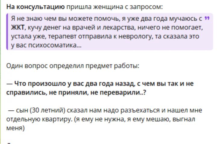 Практически все её клиенты в восторге от взаимодействия, ценность огромная, но... Если о ней не говорить, никто и не узнает. А привлекать клиентов самостоятельно не входит в обязанности психолога.