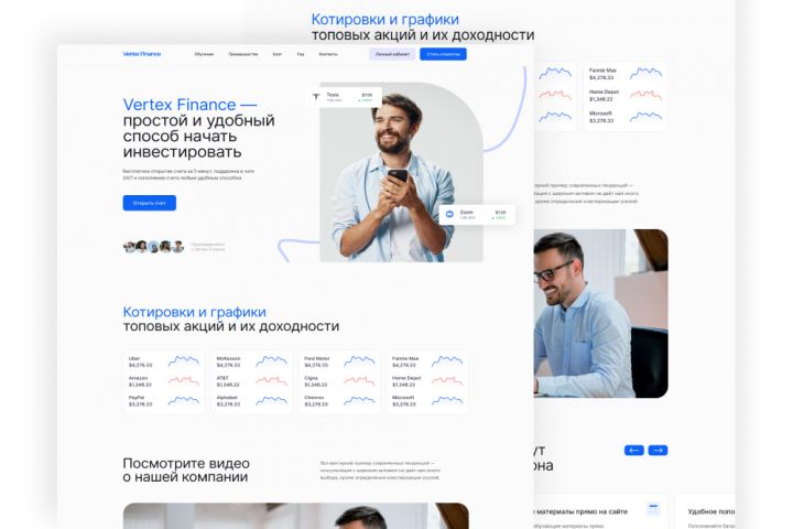 Дизайн лендинга для платформы по инвестициям Vertex Finance