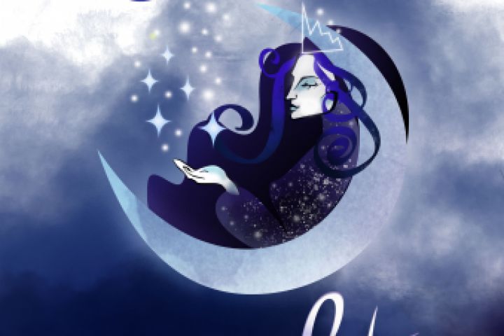 Иллюстрация со специально созданным персонажем, стилизованным под волшебницу из сказок (авторская идея), изображение выдержанно в синих тонах, тема - ночь. украшено каллиграфической надписью "Good night". При оформлении были использованы акварельные текстуры и эффект подсветки.