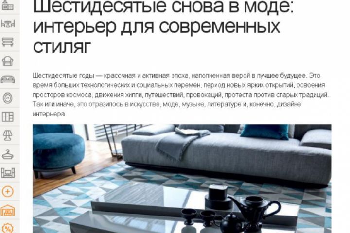 Шестидесятые годы — красочная и активная эпоха, наполненная верой в лучшее будущее. Это время больших технологических и социальных перемен, период новых ярких открытий, освоения просторов космоса, движения хиппи, путешествий, провокаций, протеста против старых традиций. Так или иначе, это отразилось в искусстве, моде, музыке, литературе и, конечно, дизайне интерьера.