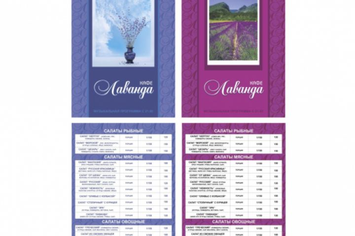 разработка меню для кафе "Лаванда" (г.Сочи)