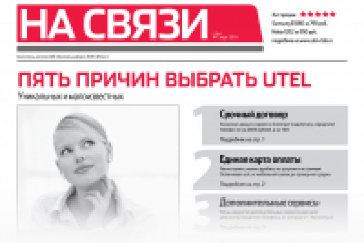 Вёрстка, ретушь фото и предпечатная подготовка нескольких номеров газеты «Вестник связи Utel».