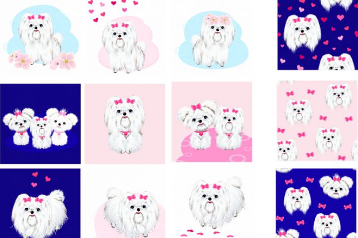 Векторные рисунки для открыток и заставок, паттерны, фоны, поздравления картинки любовь, животные, белые собачки, праздник