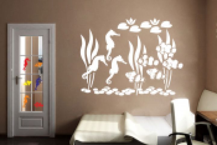 Дизайн интерьера детской - Виниловые наклейки - рыбки и водоросли одноцветные