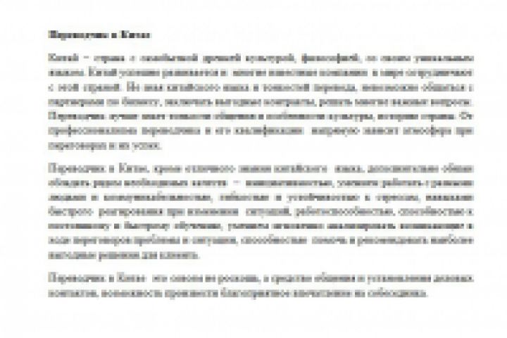 Текст написан на заказ. ТЗ - рассказать о необходимости в услугах переводчика при поездке в Китай и ведении бизнеса с компаниями этой страны. В целом текст написан кратко и лаконично. Ключевая фраза - переводчик в Китае, прямое вхождение 2-3 раза.