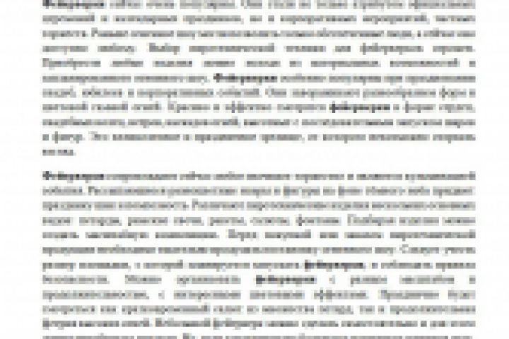 Текст написан на заказ. В ТЗ было указано название статьи, которое являлось ключевым словом. Дано описание видов фейерверков и правила использования. Объем текста 1,5 кз, уникальность 98% (Адвего, шингл 4).