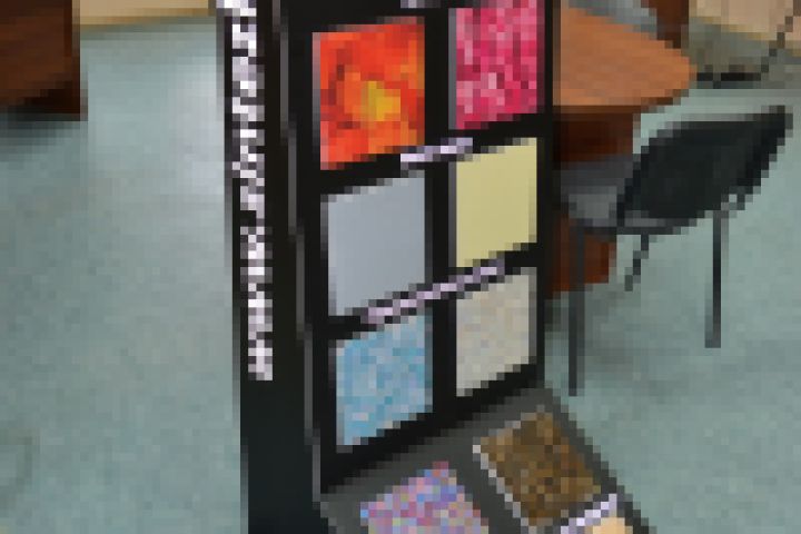 Стенд для фирмы Синтез КЗ, с образцами декоративного наливного пола.