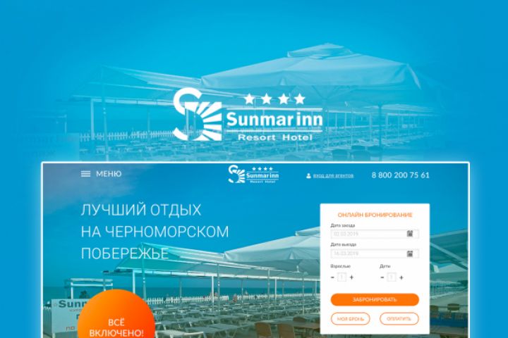 Sunmar INN - курортный отель в Анапе предоставляющий услуги по размещению, развлечению и питанию гостей отеля. Потребовался редизайн существующего сайта отеля.