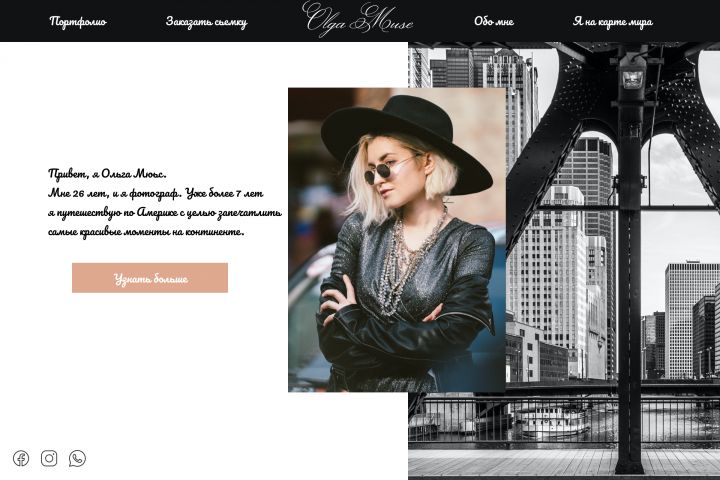 Landing page для Ольги Мьюс (блоггер-фотограф)