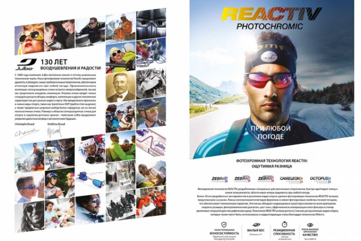 Ежегодный каталог спортивных оков Julbo, формат А4, от 64 до 80 полос.