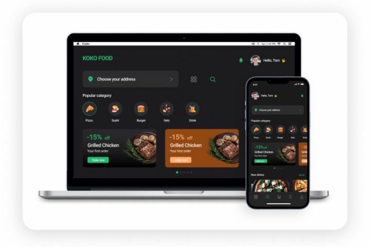 Разработал мобильное приложение, web сайт, UI/UX дизайн для доставки еды.