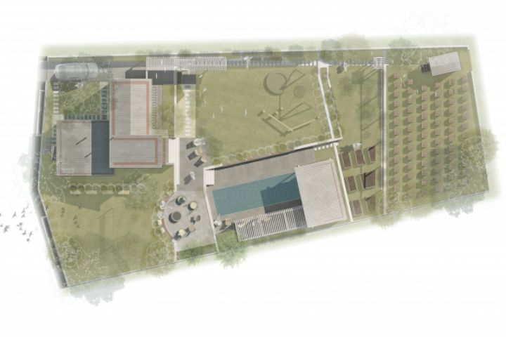 Участок проектирования расположен в Самарской области, пгт. Новосемейкино, снт "Кооператив Пчелка". Снеговой район - IV, ветровой район - 3. Площадь участка 1130 м2. На участке размещены: бассейн (30 м2), беседка (47 м2), костровая зона (27 м2), открытая терраса (24 м2), площадка для активного отдыха (154 м2), спортивная площадка для большого тенниса (66 м2), сад (60 м2), огород (85 м2), пасека (182 м2), парковка (15 м2).