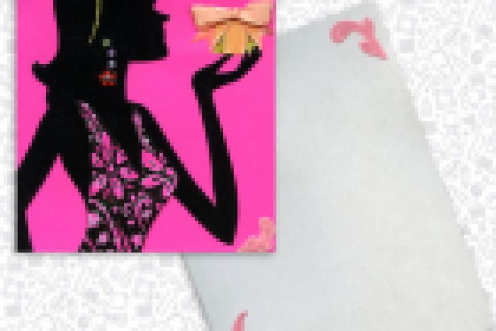 9х11 см, односторонняя. Отличный подарок для веселой, гламурной девушки. (Декоративный картон, бархатная бумага, ленты, гелевые чернила, стразы, пайетки)