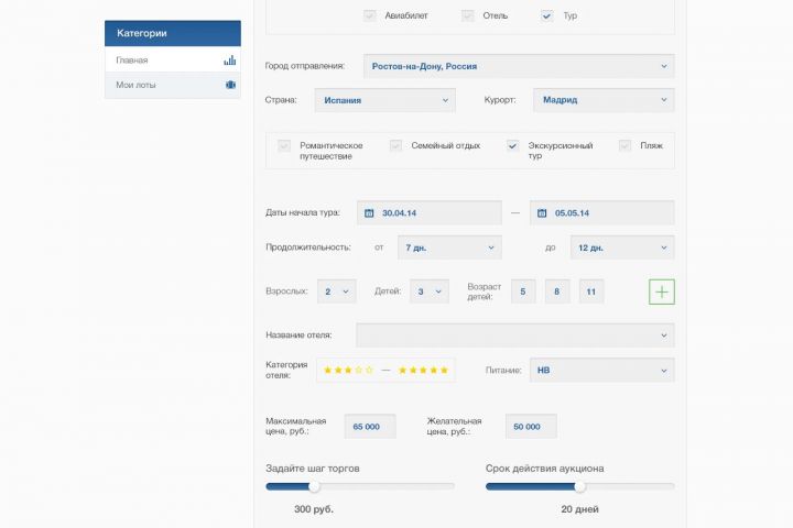 Перед нами стояла задача — разработать инновационную онлайн-платформу аукционного типа для продажи туров под брендом «Vatgo». Основная идея проекта заключалась в том, чтобы превратить покупку туров в увлекательный процесс — пользователи могли участвовать в торгах, делая ставки на интересующие предложения.