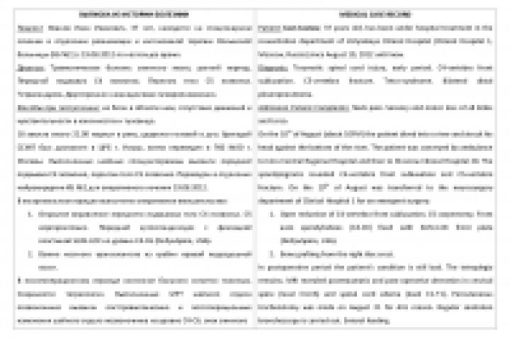 Перевод выписки из истории болезни с русского языка на английский для отправки в клиники Германии, Израиля и США. Первая страница.