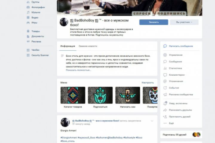 Создано с нуля - от идеи до приведения к текущей численности ( в развитии), стабильный растущий охват, реальные продажи товаров сообщества и рекламы. Самостоятельно разработано авторское оформление и фирменный стиль - обложка, шаблоны постов, разделов, меню и пр., настроены приложения и виджеты, группа наполнена товарами, осуществляется регулярный постинг целевого контента - посты, статьи, активности в виде конкурсов и пр., налажено безбюджетное продвижение и пр.