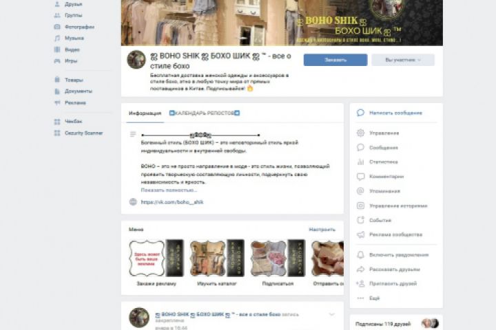 Создано с нуля - от идеи до развития численности более 11K, стабильный растущий охват, реальные продажи товаров сообщества и рекламы. Самостоятельно разработано авторское оформление и фирменный стиль - обложка, шаблоны постов, разделов, меню и пр., настроены приложения и виджеты, группа наполнена товарами, осуществляется регулярный постинг целевого контента - посты, статьи, активности в виде конкурсов и пр., налажено безбюджетное продвижение и пр.