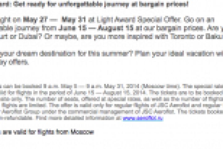 Перевод новостной рассылки для Аэрофлот о специальном предложении Light Award
