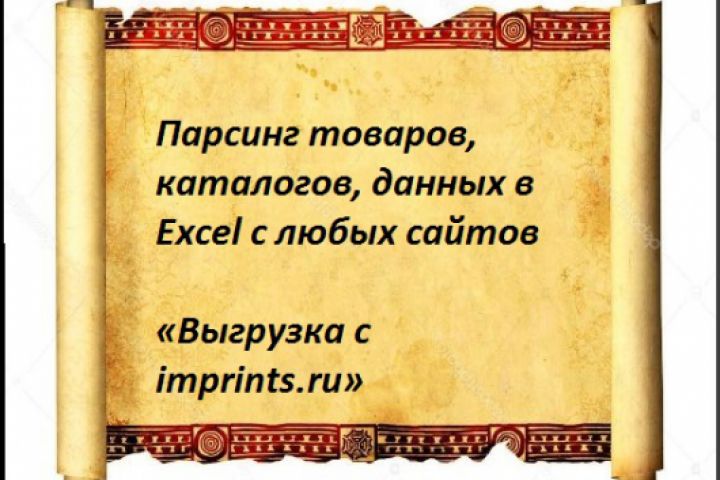 Задача Спарсить с сайта imprints.ru следующие данные по товарам: 1. Модель 2. Название товара 3. Цена 4. Производитель 5. Ресурс печати 6. Цвет 7. Ссылка на товар Выгрузить все это в exel формате