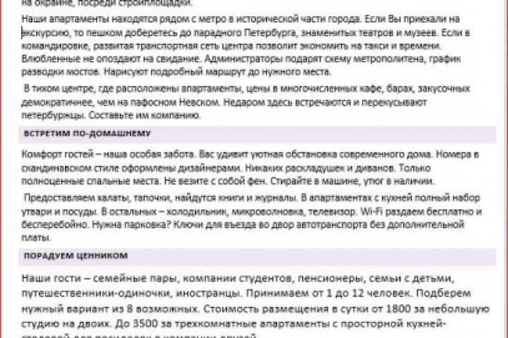 Продающий текст для сайта компании, занимающейся посуточной арендой квартир
