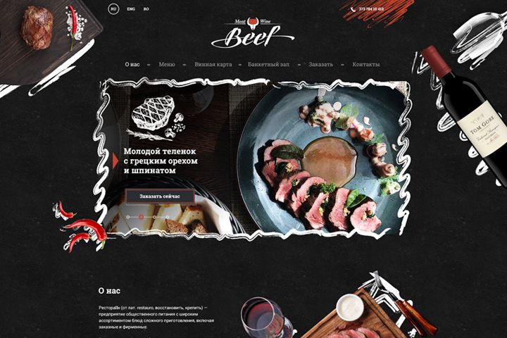 Дизайн сайта ресторана Beef.Meat&Wine (Молдова, Кишинев)