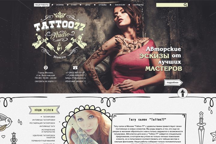 Дизайн сайта + лого тату-салона в хипста-винтажном стиле