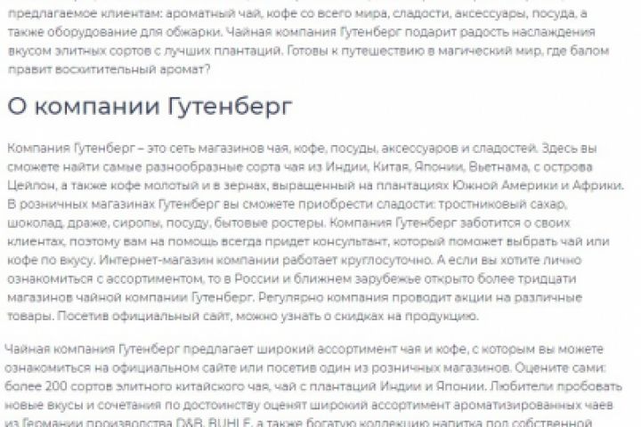 Необходимо написать информационную SEO-оптимизированную статью “Gutenberg чай: история компании и официальный сайт”