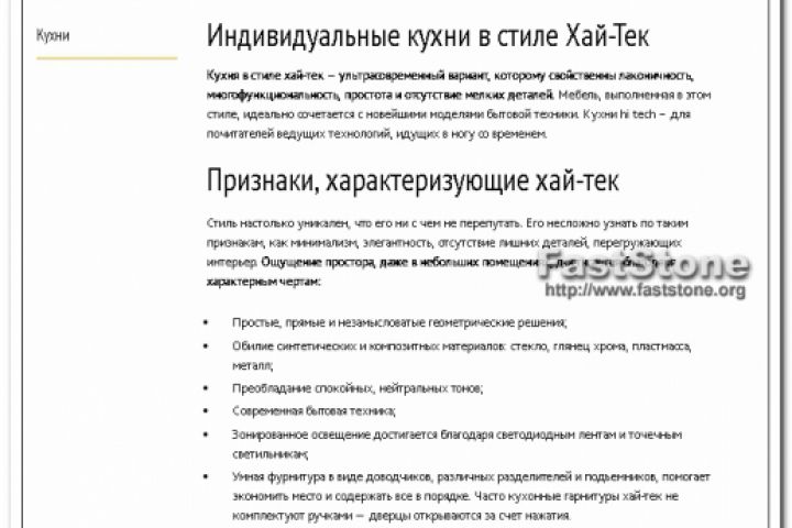 Описание кухни в стиле хай тек с продающей частью + ключевые фразы.
